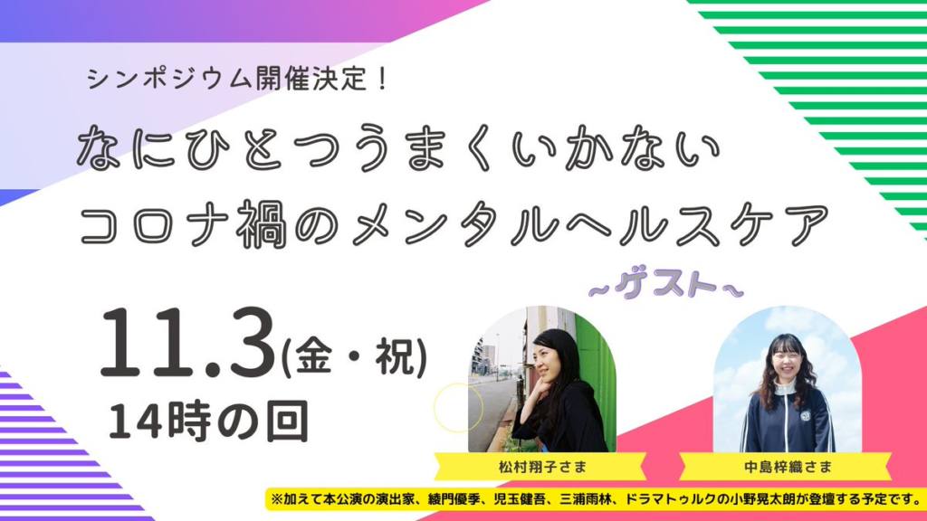 11/3(金・祝)14時回の終演後、シンポジウム「なにひとつうまくいかないコロナ禍のメンタルヘルスケア」を開催します。
